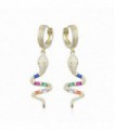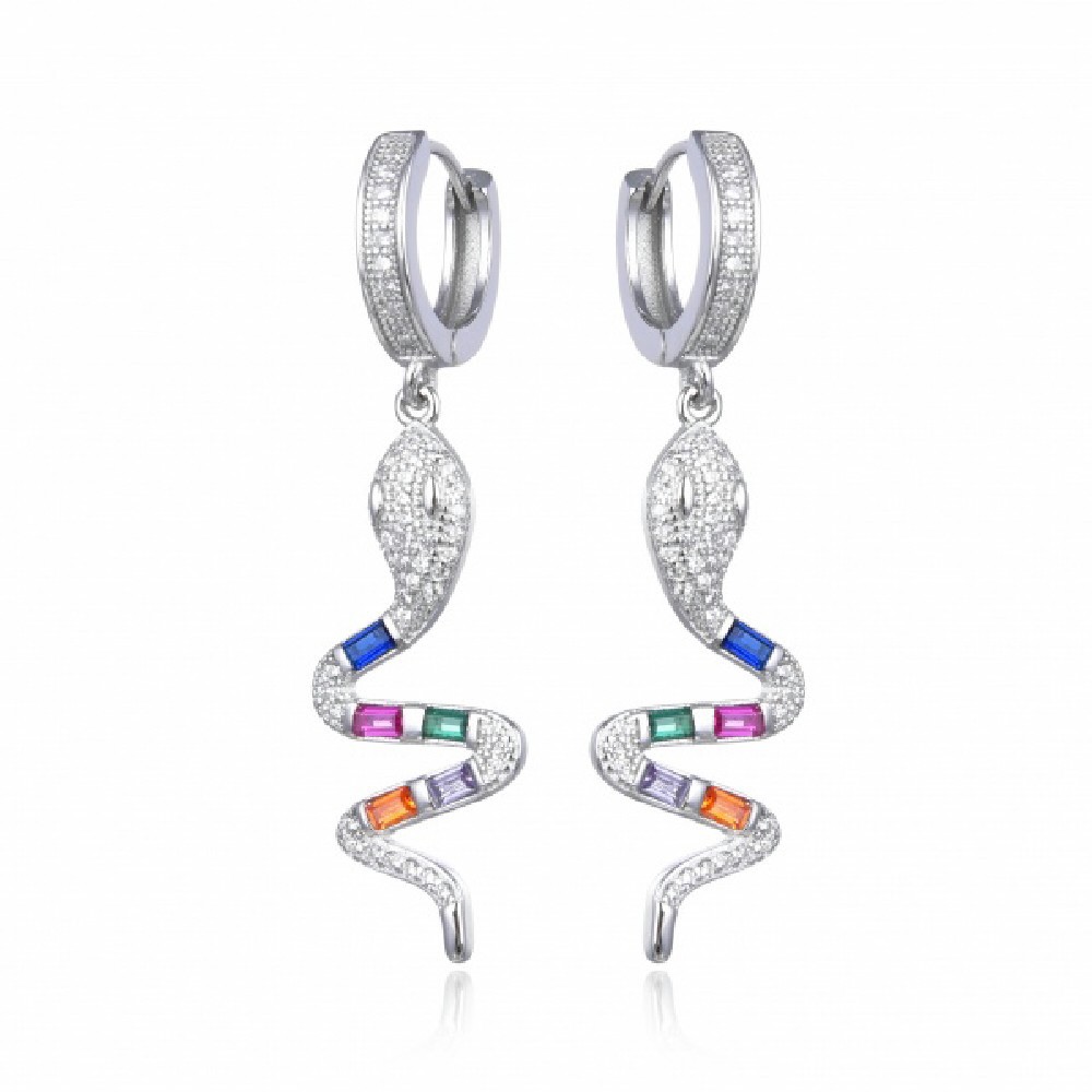 Pendientes de aro con colgante de serpiente y piedras de colores engastadas fabricado en plata de ley 925 mm con baño en rodio para una mayor calidad y brillo. Pendientes novedad Otoño 2021.
