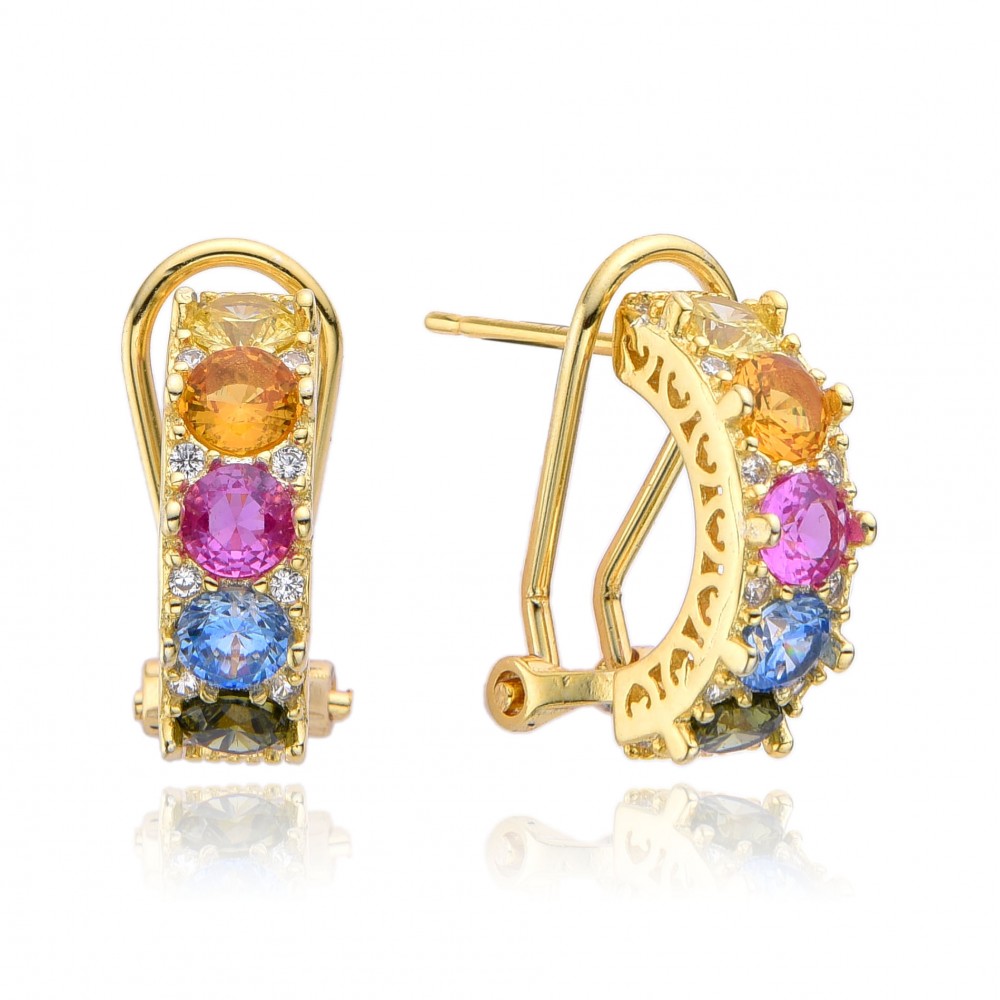 Pendientes elegantes con gemas de colores, disponibles en plata blanca 925 o chapado en oro. Cierre tipo Omega para una mayor comodidad y seguridad.