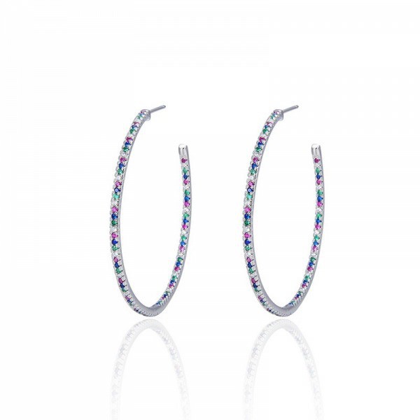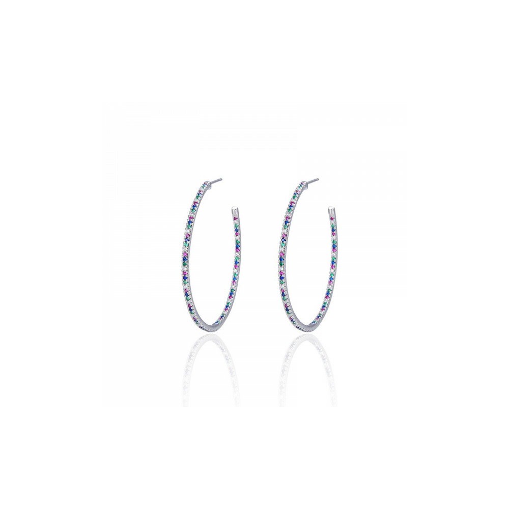 Pendientes de aros con piedras de color, multicolor, engarzadas en plata de ley 925mm rodiada. Cierre de presión para mayor comodidad. Diámetro del aro multicolor: 37mm.